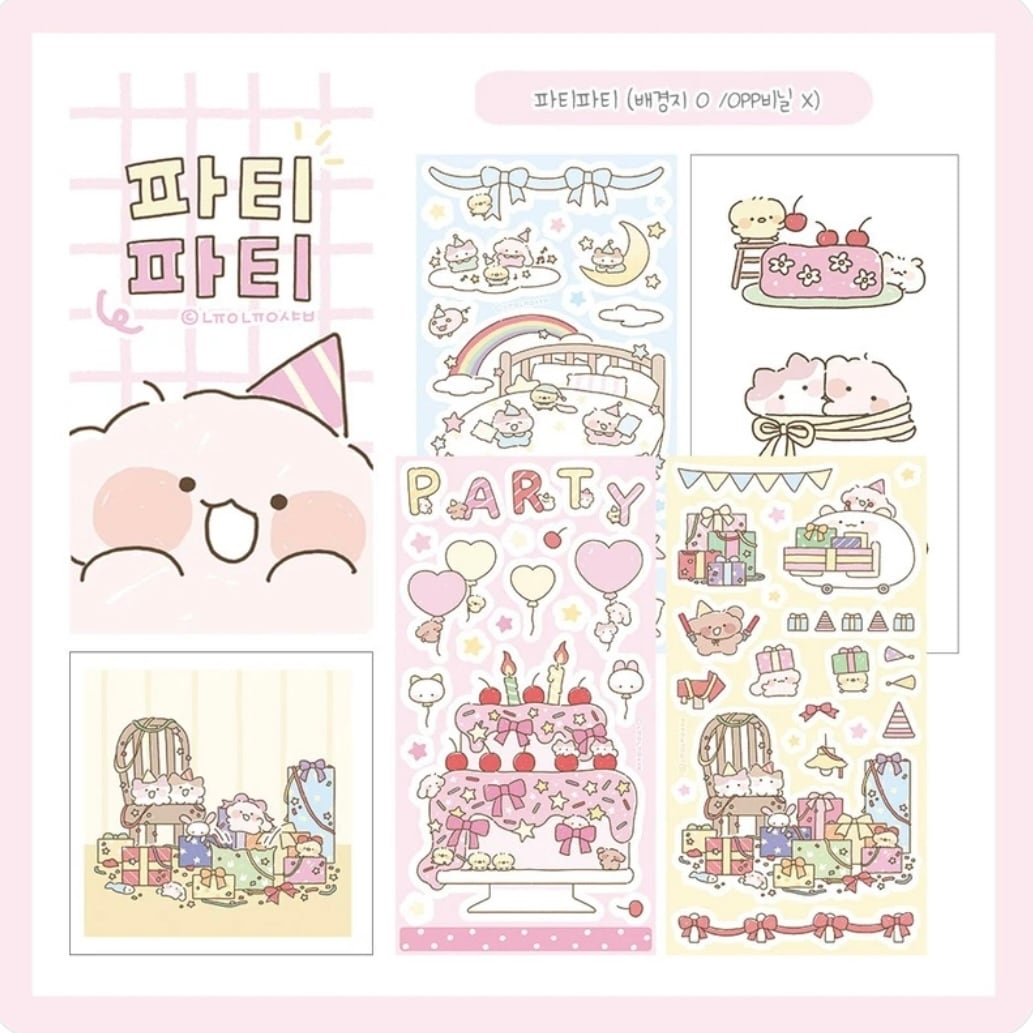 PARTYをテーマにしたお得なステッカーセットです:) 単品販売もしています♡ 〔構成〕 ステッカー3枚: 105mm×148mm ステッカーの背景紙 3枚 模造紙のステッカー 3枚 正方形の ハガキ素材のミニカード:78×78mm ※ご注文の数量により、発送が複数に分かれる場合がございますのでご了承くださいませ。送料の追加はありません。