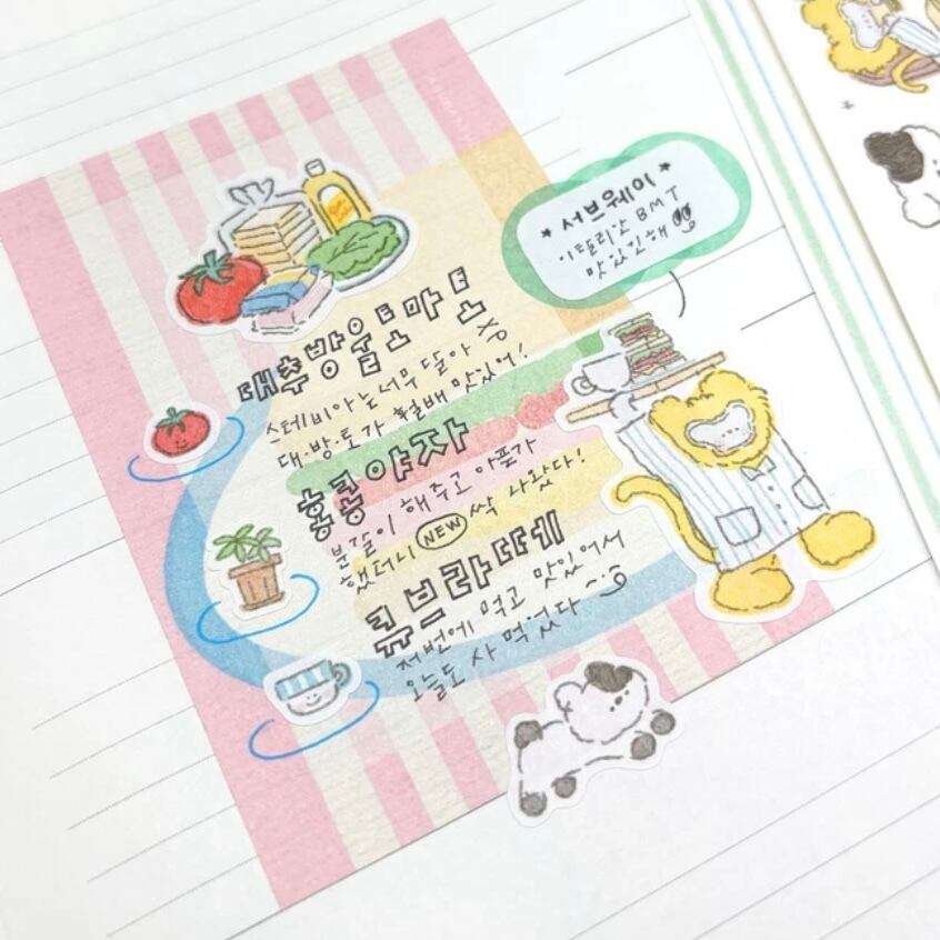 新しくお取り扱いすることになりましたABUBA STUDIO♡ キャラクターの朝の準備のステッカーです! 商品名:흐물흐물 부바의 아침 サイズ:74㎜×174㎜ 枚数:1枚 素材:模造紙 ※ご注文の数量により、発送が複数に分かれる場合がございますのでご了承くださいませ。送料の追加はありません。